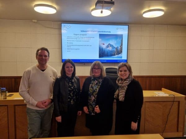 Bilde av arbeidsgruppa i LSU, fra høyre: Christoffer Boge (samhandlingsleder/kommuneoverlege), Marit Øen Li (Avdelingsjef HSS/samhandlingssjef), Kitty Line Scheen ( Seksjonsleder Ringerike DPS, avd Hallingdal) og Borghild Ulshagen (kommunalsjef helse og omsorg, Ål kommune)